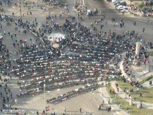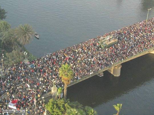 கெய்ரோவின் பிரபல தஹ்ரீர் சதுக்கத்தில் லட்சத்திற்கும் மேற்பட்ட மக்கள்அணிதிரண்டு எழுச்சிப்போரை தொடர்கின்றனர்.