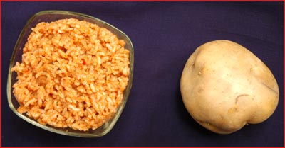 செய்முறை: அரிசியை உப்பு சேர்த்து உதிராக வடித்துக்கொள்ளுங்கள். உருளைக்கிழங்கை தோல் சீவி பொடியாக நறுக்குங்கள். எண்ணெயைக் காயவைத்து உருளைக்கிழங்கை சேருங்கள். அத்துடன் உப்பு, மஞ்சள்தூள் சேர்த்து நன்கு வதக்குங்கள். உருளைக்கிழங்கு வெந்ததும் மற்ற தூள்களையும் சேர்த்து நன்கு வதக்கி நெய், சாதம் சேர்த்து நன்கு கிளறி இறக்குங்கள். குழந்தைகளுக்கு இதன் ருசி மிகவும் பிடிக்கும்.