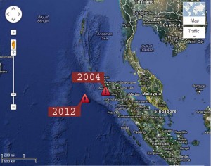கடந்த மாதம் (11-04-2012) இந்தோனேசியாவின் பண்டா அச்சே பகுதியில் ஏற்பட்ட 8.6 ரிக்டர் நிலநடுக்கமும் அதன் பிறகு ஏற்பட்ட பின் அதிர்வு என்று வர்ணிக்கப்பட்ட 8.2 ரிக்டர் நில நடுக்கத்தினாலும் 28 நாடுகளுக்கு சுனாமி எச்சரிக்கை விடுக்கப்பட்டு பிறகு வாபஸ் பெறப்பட்டது. 2004ற்குப் பிறகு அதே பகுதியில் மிகப்பெரிய பூகம்பம் ஏற்பட்டும் சுனாமி ஏற்படாததன் காரணம் என்ன என்பதை புவியியல் விஞ்ஞானிகள் ஆராய்ந்து வருகின்றனர்.