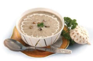 வேறொரு காடாயில் வெண்ணெய் சேர்த்து அடுப்பில் வைத்து, சூடானதும் நறுக்கிய வெங்காயம் போட்டு வதக்கவும். நன்கு வதங்கும்போது பூண்டு, பிரிஞ்சி இலை, தைம் இலை சேர்த்து வதக்கி, நறுக்கிய காளானை சேர்த்து வேகும் வரை வதக்கி, தேவையான அளவு தண்ணீர் சேர்க்கவும். எல்லாம் சேர்த்து கொதி வந்தவுடன்… வொயிட் சாஸ், உப்பு, வெள்ளை மிளகுத்தூள் சேர்த்து, மேலும் ஒரு கொதி வந்தவுடன் இறக்கி, பரிமாறவும்.