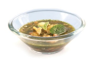 செய்முறை: மிக்ஸியில் புதினா, கொத்தமல்லி, பச்சை மிளகாய், பூண்டு சேர்த்து நன்கு அரைத்துக் கொள்ளவும். ஒரு பாத்திரத்தில் வேக வைத்த பருப்புத் தண்ணீர், புளிக் கரைசல், வெல்லம், உப்பு, எலுமிச்சைச் சாறு சேர்த்து நன்கு கொதிக்க வைத்து, பிறகு அடுப்பிலிருந்து இறக்கி, அதில் அரைத்த புதினா விழுதை சேர்க்கவும். இதனுடன் கறுப்பு உப்பு, சீரகத்தூள், மிளகாய்த்தூள், கரம் மசாலாத்தூள் சேர்த்து கரண்டியால் நன்கு கிளறி வைக்கவும்.