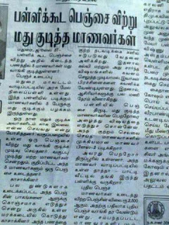 தமிழக பள்ளி மாணவர்களில் 45% பேருக்கு குடிப்பழக்கம் இருப்பதாக சமீபத்திய ஆய்வில் தெரியவந்துள்ளது. நமது குழந்தைகளுக்கும் நாளை இதே நிலைதான் வரும் என்று அனைவரும் அஞ்ச வேண்டிய நிலை வந்துவிட்டது.
