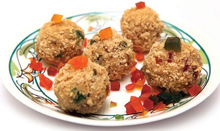 செய்முறை: பேரீச்சையை பொடியாக நறுக்கவும். முந்திரியை பொடியாக நறுக்கி நெய்யில் வறுக்கவும். வறுத்த வேர்க்கடலை, வறுத்த எள், பொட்டுக்கடலை, ரஸ்க் ஆகியவற்றை மிக்ஸியில் பொடிக்கவும். அதனுடன் வெல்லம் சேர்த்து ஒரு சுற்று சுற்றவும். இந்தக் கலவையுடன் பேரீச்சை, முந்திரி, திராட்சை, டூட்டி ஃப்ரூட்டி சேர்த்துக் கலந்து, உருண்டை களாகப் பிடித்து பரிமாறவும்.