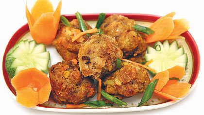செய்முறை: முளைகட்டிய நவதானியத்தை கொரகொரப்பான விழுதாக அரைத்துக்கொள்ளவும். உருளைக்கிழங்கை வேகவைத்து, தோலுரித்து, மசித்துக்கொள்ளவும். மைதா மாவு, நவதானிய மாவு, ஒரு சிட்டிகை உப்பு, ஒரு டீஸ்பூன் எண்ணெய், தேவையான நீர் சேர்த்து கெட்டியாக பூரி மாவு பதத்தில் பிசையவும். வாணலியில் சிறிதளவு எண்ணெய் விட்டு காய்ந்ததும் பொடியாக நறுக்கிய கீரைகளை சேர்த்து வதக்கவும். இதனுடன் அரைத்த நவதானிய விழுது, மசித்த உருளை, புதினா, உப்பு, கரம் மசாலாத்தூள், மிளகாய்த்தூள், சீரகத்தூள் சேர்த்து நன்கு கிளறவும். பின்பு இறக்கி, ஆறவிட்டு சின்ன சின்ன உருண்டைகளாக்கவும்.