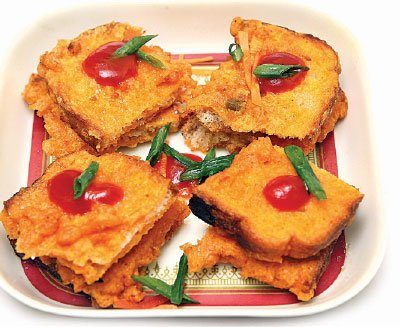 குறிப்பு: பன் துண்டுகளின் நடுவில் மிகவும் மெல்லியதாக, வட்டமாக ‘கட்’ செய்த தக்காளி, குடமிளகாயையும் வைக்கலாம்.