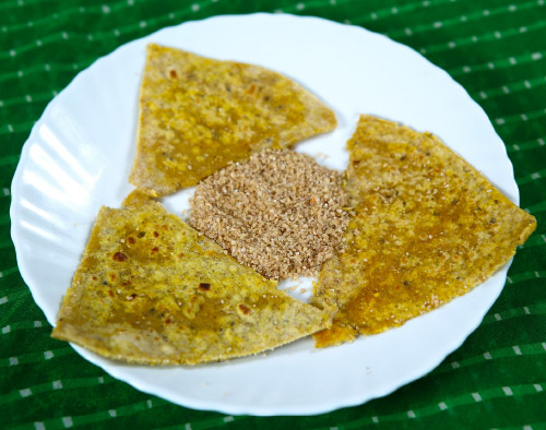 செய்முறை: அரிசி, பருப்பைத் தனித்தனியே நீரில் ஒரு மணி நேரம் ஊறவைத்த பின், இவற்றோடு மிளகாய், சீரகம், கறிவேப்பிலை, வெங்காயம் சேர்த்துக் கொரகொரப்பாக அரைக்கவும். இந்த மாவில் உப்பு, ஆய்ந்த முருங்கைக் கீரையைச் சேர்த்து, தோசைக் கல்லைக் குறைந்த தணலில் வைத்து, எண்ணெய் விட்டு அடை சுட்டு இருபுறமும் திருப்பிப் போட்டு வேகவிட்டு எடுக்க வேண்டும். நாட்டுச்சர்க்கரையைத் தொட்டுச் சாப்பிட, சுவையாக இருக்கும்.