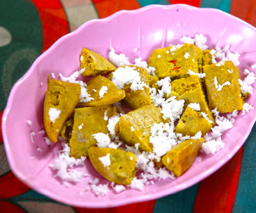 செய்முறை: கடாயில் எண்ணெய் விட்டு கடுகு, கறிவேப்பிலையைத் தாளித்து, பச்சைமிளகாய், தேங்காய்ப் பல் போட்டுக் கிளறி, காராமணி, உப்பு சேர்த்துப் பிரட்டவும். நீர் தேவையான அளவு விடவும். கொதிவந்தவுடன், அடுப்பைக் குறைந்த தணலில்வைத்து, சத்துமாவைக் கொட்டி, கைவிடாமல் கிளறவும். மாவு கெட்டியாகி வெந்தவுடன் இறக்கி, கொழுக்கட்டையாகப் பிடித்து, ஆவியில் வேகவிட்டு எடுத்துப் பரிமாறவும்.