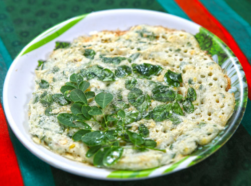 பலன்கள்: முருங்கை இலையில் வைட்டமின் ஏ இருக்கிறது. சிவப்பு அரிசியில் நுண்ணூட்டச்சத்துக்கள் இருக்கின்றன. ரத்தசோகையைத் தடுக்கும். இந்த அடை கலோரி அதிகமானது. எளிதில் வயிறு நிறைந்த உணர்வைத் தரும்.
