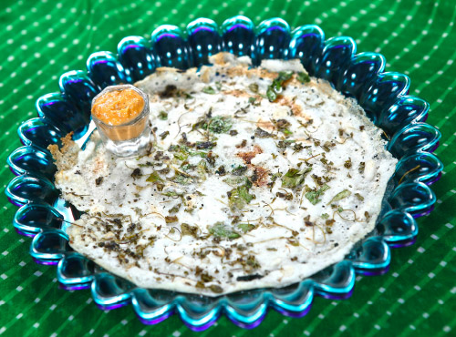 செய்முறை: அரிசி, பருப்பைக் கழுவி, தனித்தனியாக நிழலில் உலர்த்த வேண்டும். பிறகு, மிக்ஸியில் ரவையாக அரைக்கவும். கெட்டித் தயிரில் இதனை, 10 மணி நேரம் ஊறவைக்க வேண்டும். வாணலியில் எண்ணெய் விட்டு, கடுகு, காய்ந்த மிளகாயைத் தாளித்து, மாவில் சேர்த்து உப்பு போட்டுக் கிளற வேண்டும். வெங்காயத்தை எண்ணெய் விட்டு வதக்கிக்கொள்ளவும். தோசைக் கல்லில் எண்ணெய்விட்டு ஊத்தப்பமாக ஊற்றி, வதக்கிய வெங்காயம் ஒரு கைப்பிடி போட்டு, மூடிவிட வேண்டும். திருப்பிப் போடக் கூடாது.